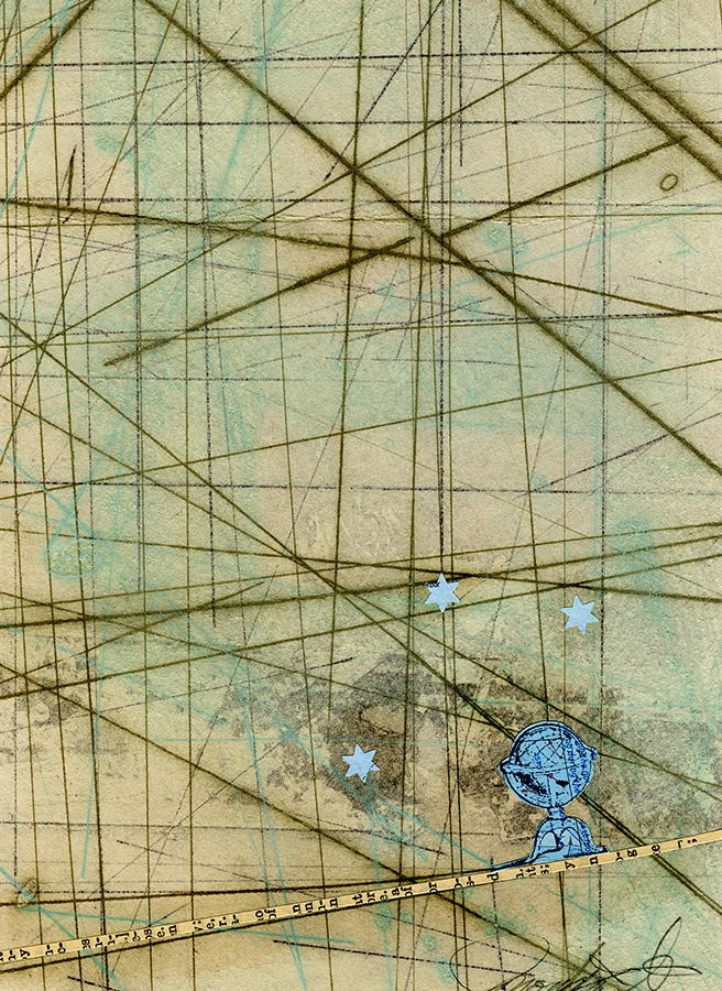 Intaglio Monotype Collage with Graphite and Rhinestones
