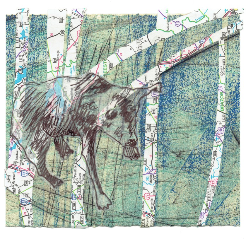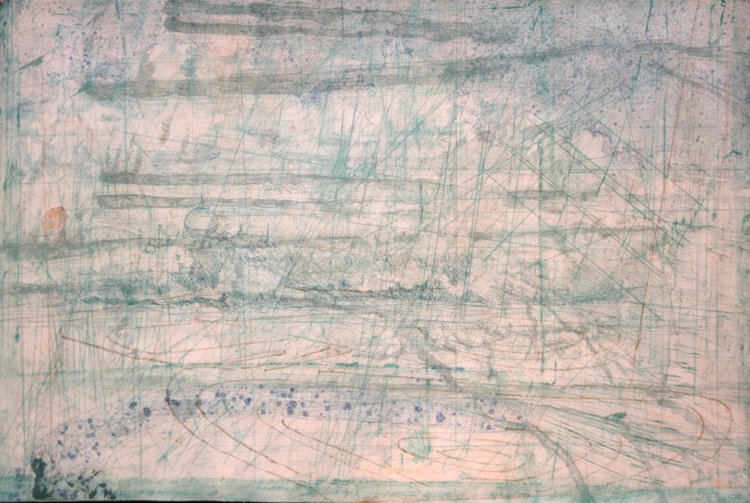 Intaglio Monotype on Rives BFK with Collage, Ink, Watercolor, Drawing and Maps
