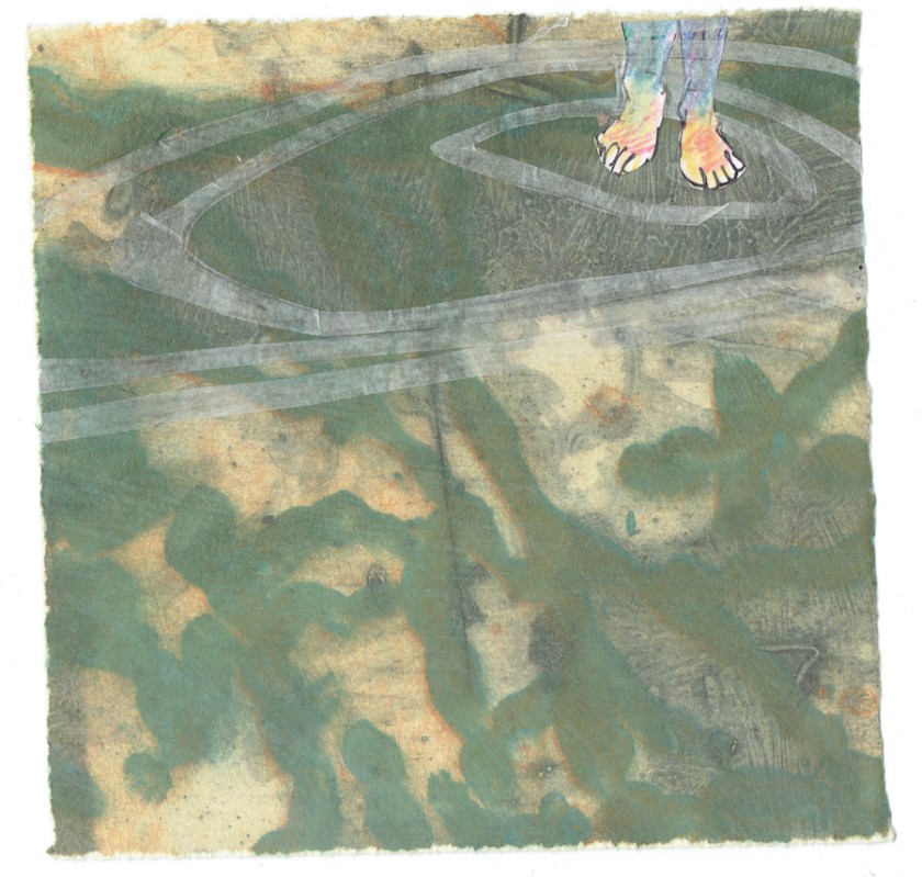 Summer Wading Intaglio, graphite on BFK 6″ W x 6” H 2018 NFS digital 24″ x 24″ $200.00
