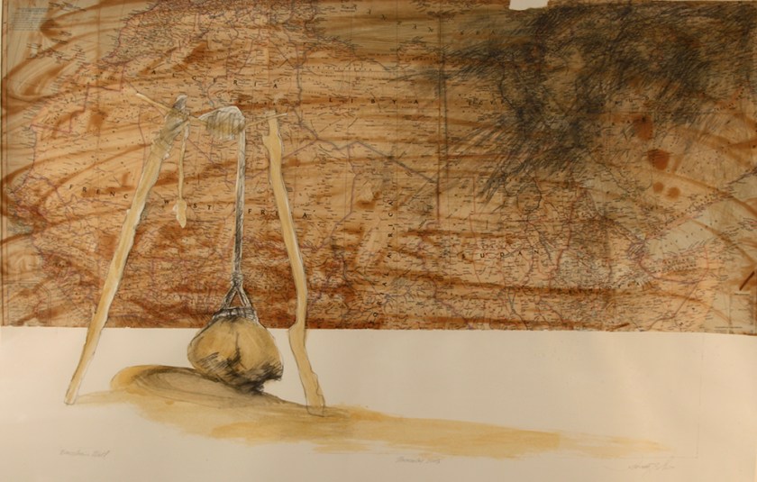 Starch resist Fabric Created by the Artist, Maps, and Cowrie Shells