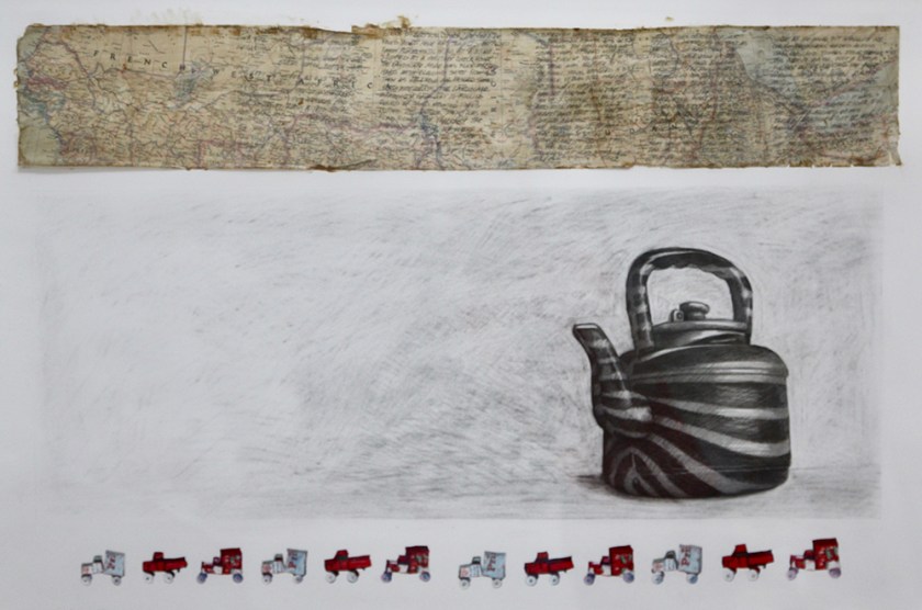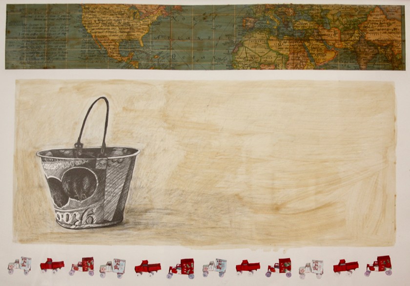 Collage, Graphite, Prisma Color Pencil, and Shellac