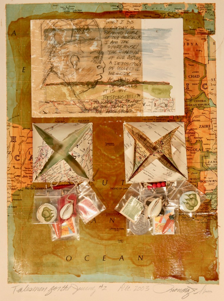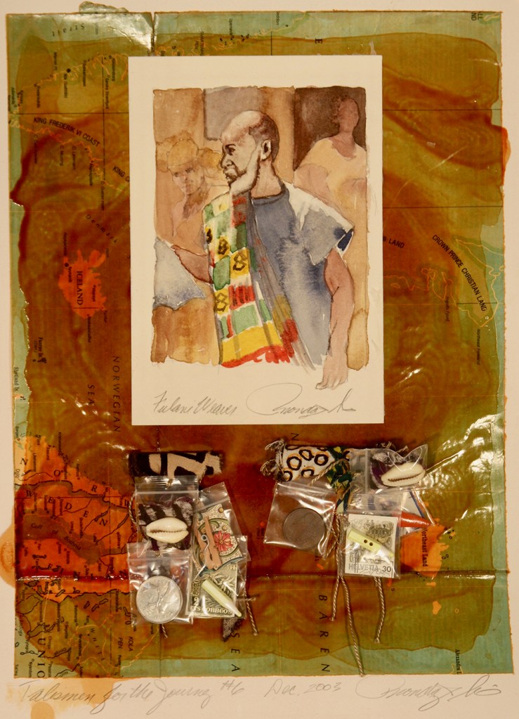 In 2003 I made my first trip to West Africa. The intersection of art and life I found in Africa continues to empower many of my works. The first trip was highly influenced by the artistic practices I encountered among the Baule, Malinki, and Senufo of Cote D’Ivoire. I traveled to Mali West African in 2004 where the Bamana, Dogon, Fulani, and Bozo people inspired work based on the idea of talismans and amulets designed to protect, heal, and empower the wearer.