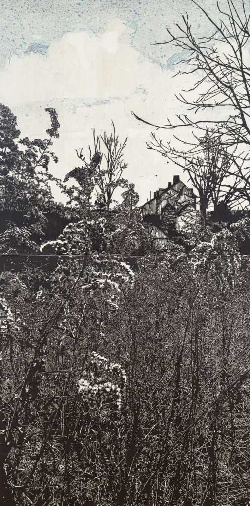 Linoleum monotype with Chine Colle