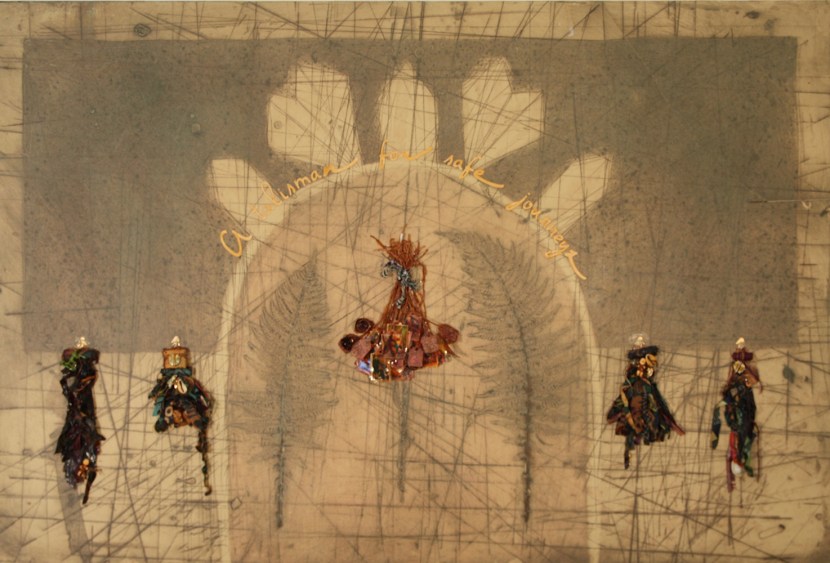 A Talisman for Safe Journeys A Talisman for Safe Journeys Intaglio with Collage 44” W x 30″ H $650.00 Related