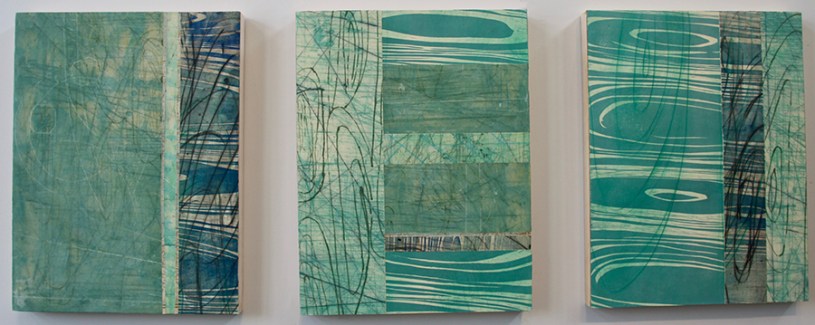 A three panel triptych each panel measures 30” H x 22” W