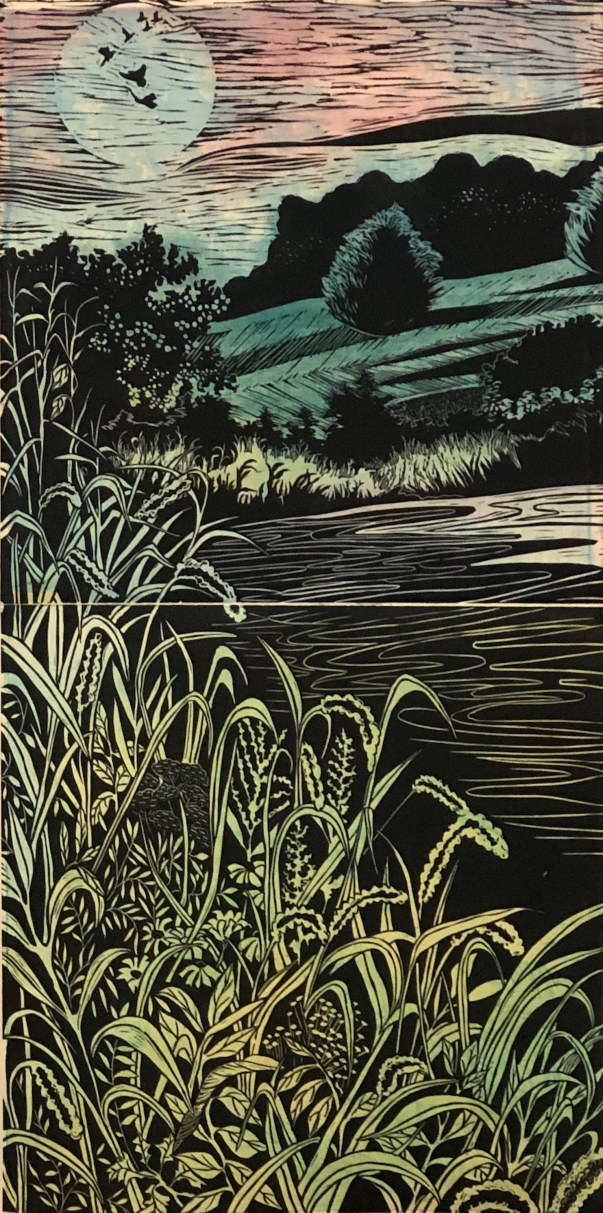 Reaching for the Moon Reaching for the Moon Linocut with intaglio 24” W x 48” H (two 24″x24″prints) 2019 $1,600.00 (mounted) / $1,000.00 (unmounted) Related