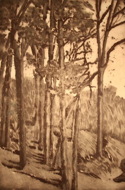 After traveling I returned home to my little house in the woods where I rediscovered the beauty of the large trees that surround me. The spiral and the circle are images that suggest the power of return, the sun, home, and new beginnings built upon history and memory.