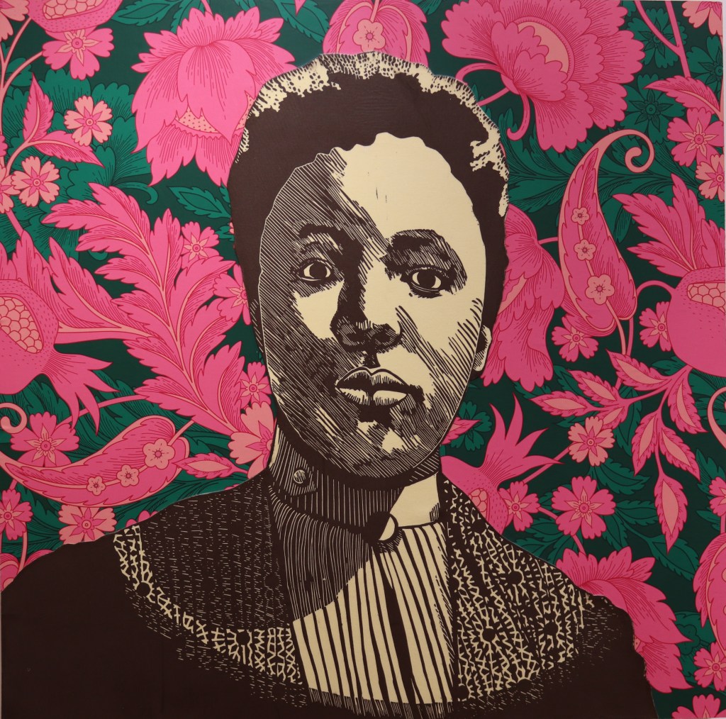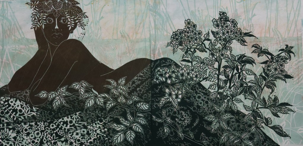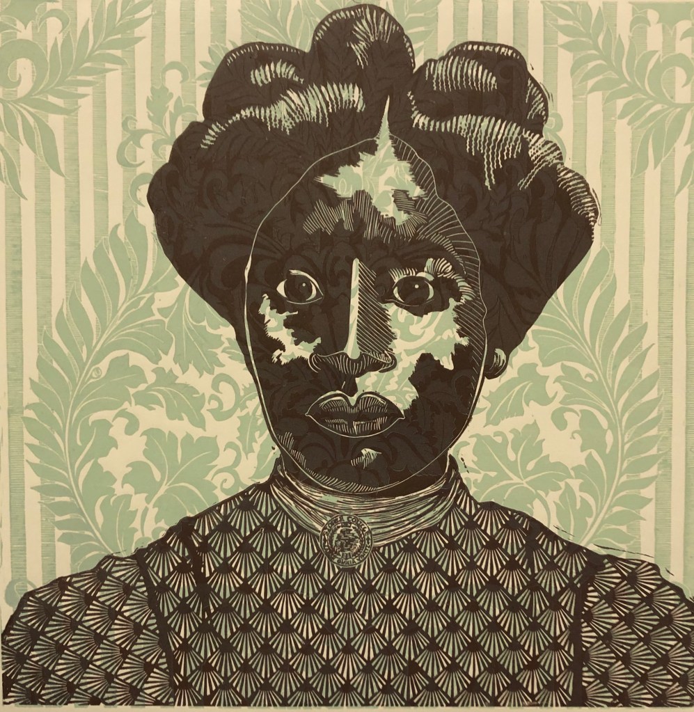 Linoleum monoprint hand cut and printed wallpaper pattern